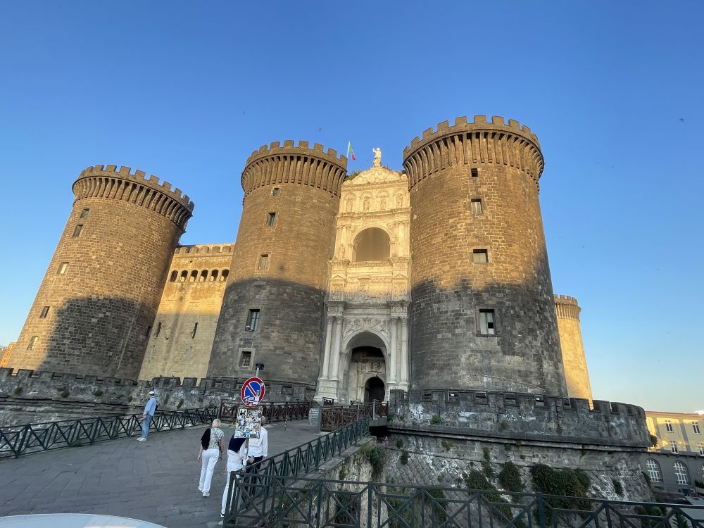 新堡(凯旋门城堡)Castel Nuovo建于13世纪,是那不勒斯港口最醒目的中世纪城堡。有五座巨大圆形塔楼和文艺复兴凯旋门入口,曾是安茹王朝与阿拉贡王朝的王宫。十几年前我乘邮轮停靠,我没进城,这是记得的那不勒斯的唯一地标。在港口乘渡船,必经之处。