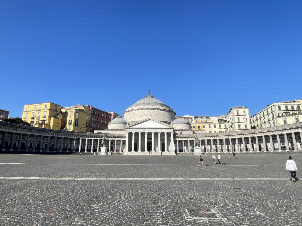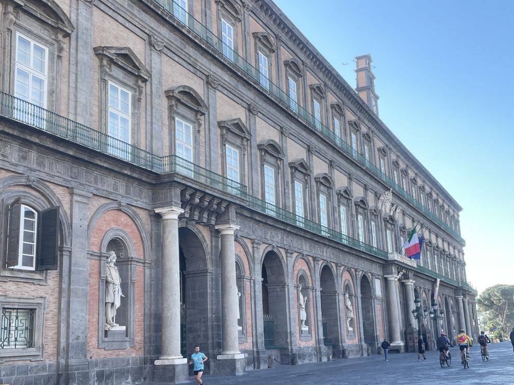 去蛋堡途经两西西里王国时期的王宫,于17世纪西班牙统治时期建造,是巨大的巴洛克式宫殿,面向城市主广场,内部有王室大厅、剧院和绘画收藏。广场对面是王室教堂,有类似梵蒂风圣彼得大教堂前的弧形柱廊。外形宏阔。我没进去参观。