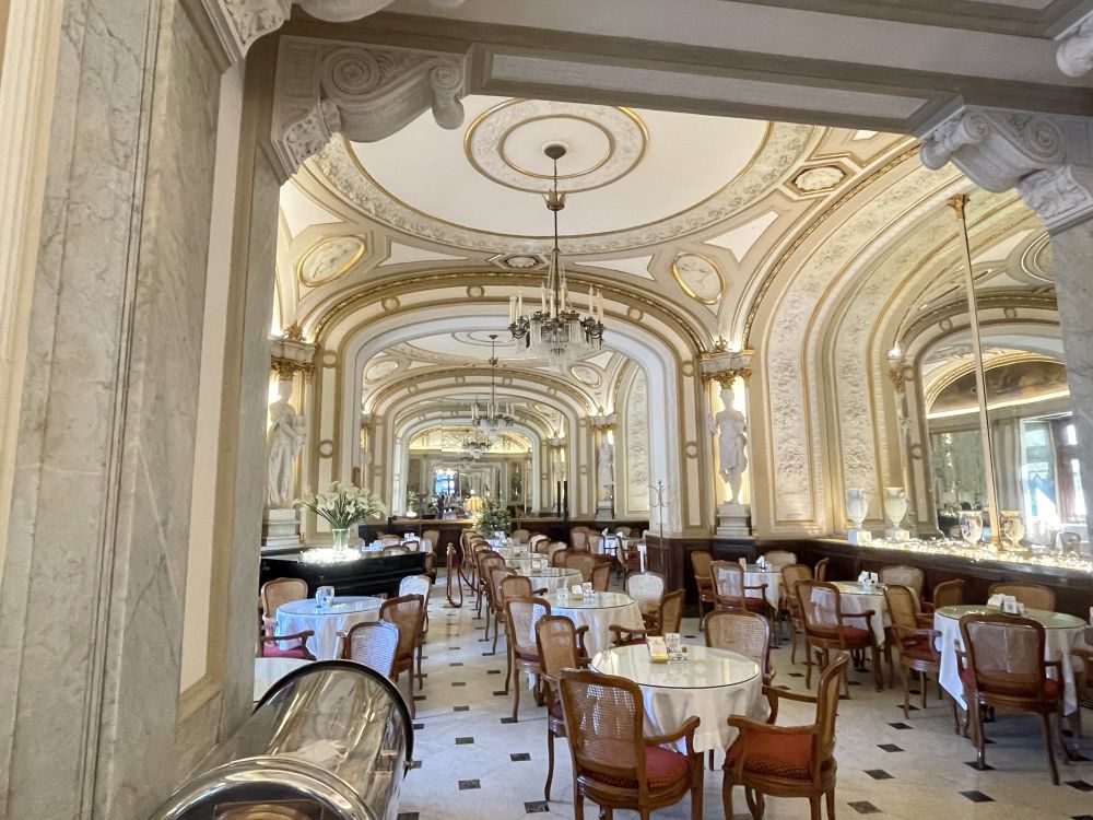 早上和下午都在王宫广场边的百年招牌老店。早上八点早餐咖啡店一开门,第一个进去,尚无客人。装修一流,但食品与服务够不上一流。