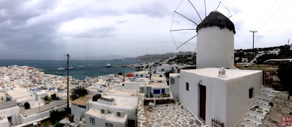 紧邻古希腊地中海最重要之宗教、政治和贸易中心,太阳神阿波罗出生地Delos,坐落着风之岛Mykonos。丙午春游,诣岛登高。但见其境幽绝,枕山襟海,势若偃月。拾级而上,白屋鳞次,皆采石灰抹墙,望之如皑皑霜雪,不染纤尘。巷陌幽邃,回还往复,宛若迷宫,原为御海盗、防流寇之计。五百多年前,岛民利用强风,建起羽翼风轮,操作磨坊碾麦,经济社仓,赖以营生。雪墙映碧海,石硙诉流年。虽无京师斗拱之雄、阙掖之尊,却有烟火之盛,生息之便。山湾之下,潮汐之滨,樯桅林立,一方净土。盖此岛之魅,不在形胜,而在平和。纵使尘寰喧嚣,至此亦觉心神静谧。草录游历所见,以为志。