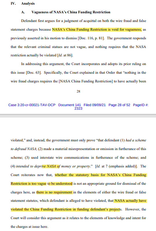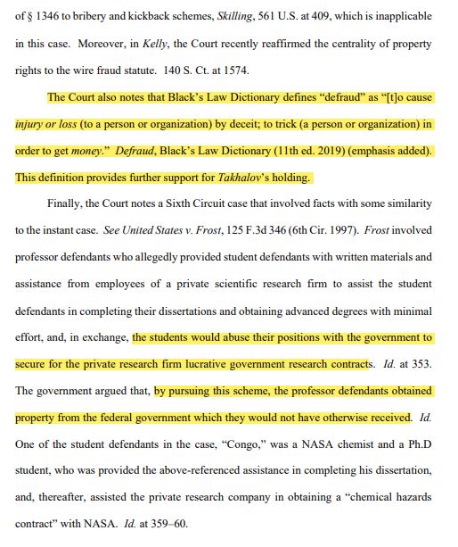 对比法官,微信群里童鞋们的争论,都太业余了,老有人纠缠住川普的China Initiative,争得面红而赤,但在这份53页的判词里,China Initiative没有出现一次,而Defraud出现了55次。