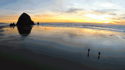 ▼Cannon Beach。我能想到最浪漫的事,就是和你一起在这夕阳中一起慢慢变老