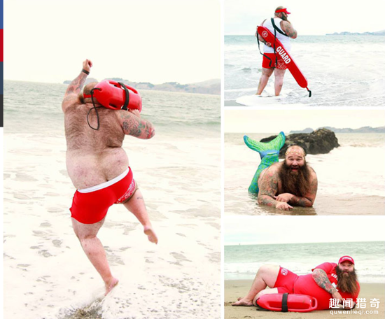 这位名叫Joshua Varozza的美国大叔在脸书上发布了这一系列男性沙滩写真照片...摄影师是他的朋友Tami Bears。