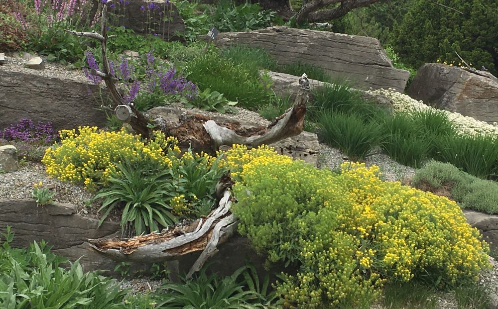 哇,故意为之的石头,费一番心思呢。本来想说石头缝里的小花,生命力多强,要向它们学习呢。:)我看见高山上,雪山上的花也特别的惊艳。