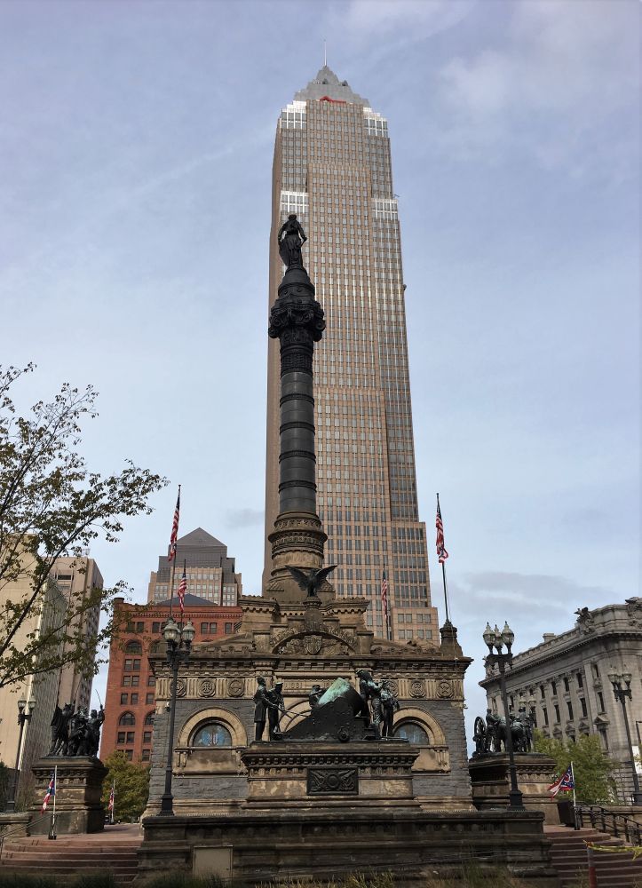 克利夫兰市中心 -- 南北战争纪念碑(建于1894年)和科凯银行总部