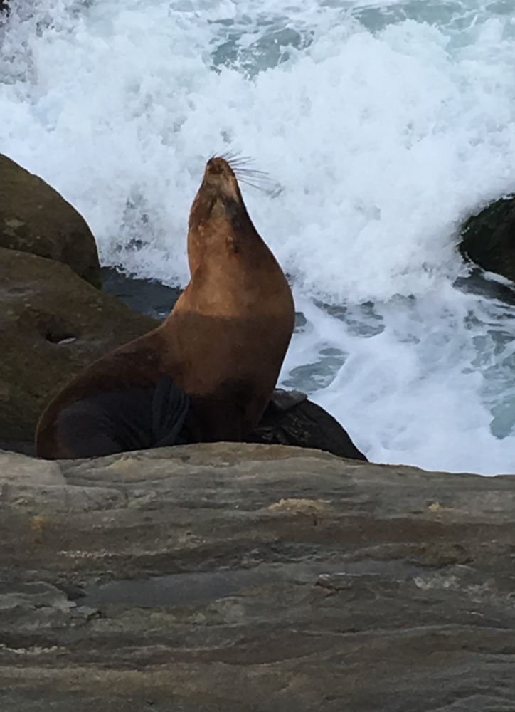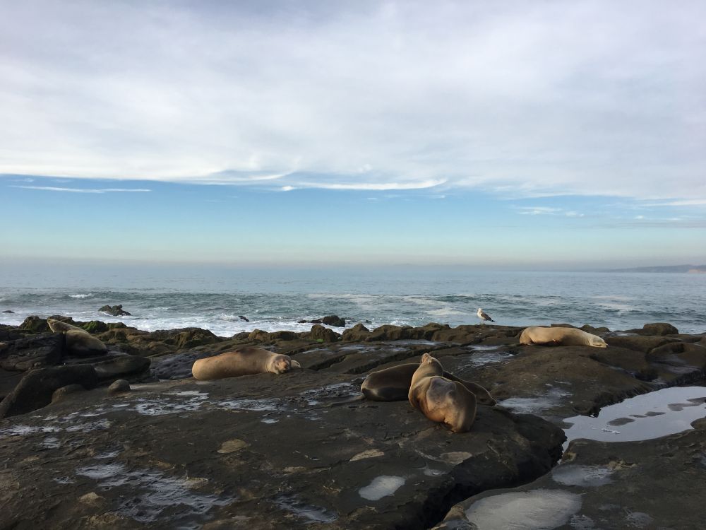 我们原来带女儿去了La Jolla Beach 看日落,还去了旁边的可以看见海的餐馆吃海鲜,问题是这个餐馆很要命,不是一下子带你到里面的,先是门口的房间,问你点什么酒水,喝一会,再把你往里带,搞来搞去还没吃上饭,就化了很多酒水钱,不过菜和风景真是好。:)