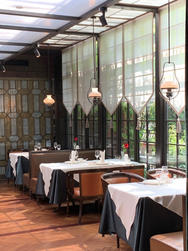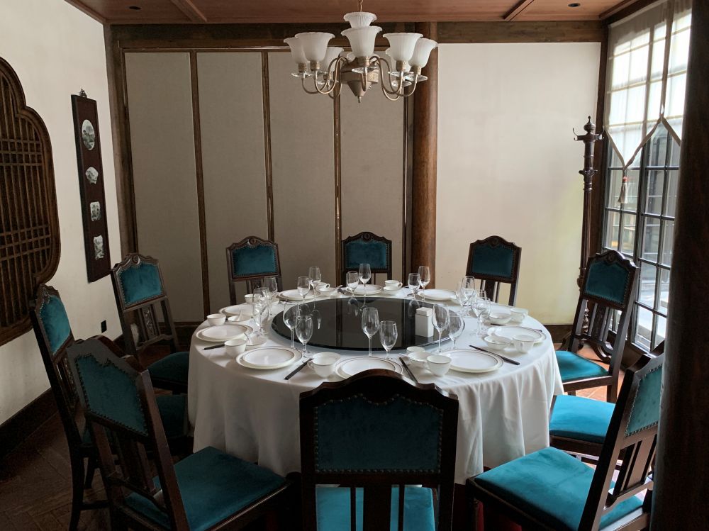 民国是这样的遥远,但又是这样的近。走进民国红公馆(老东门店)仿佛掀开历史的帷幕,走一步、转一方,进门即穿越。古色古香的民国红公馆,就像是民国时期大户人家的宅院,深红的窗木和斑驳的砖墙,都仿佛诉说着久远的往事。越往里走,越觉得红公馆深藏不露。整个红公馆的装潢修饰(壁炉、留声机、琉璃窗、小桥流水、花园和连廊 。。。)与其说是一家餐厅,倒不如说是一个精心装修的豪门。光影交错之间仿佛能窥到旧时的激荡与繁荣。