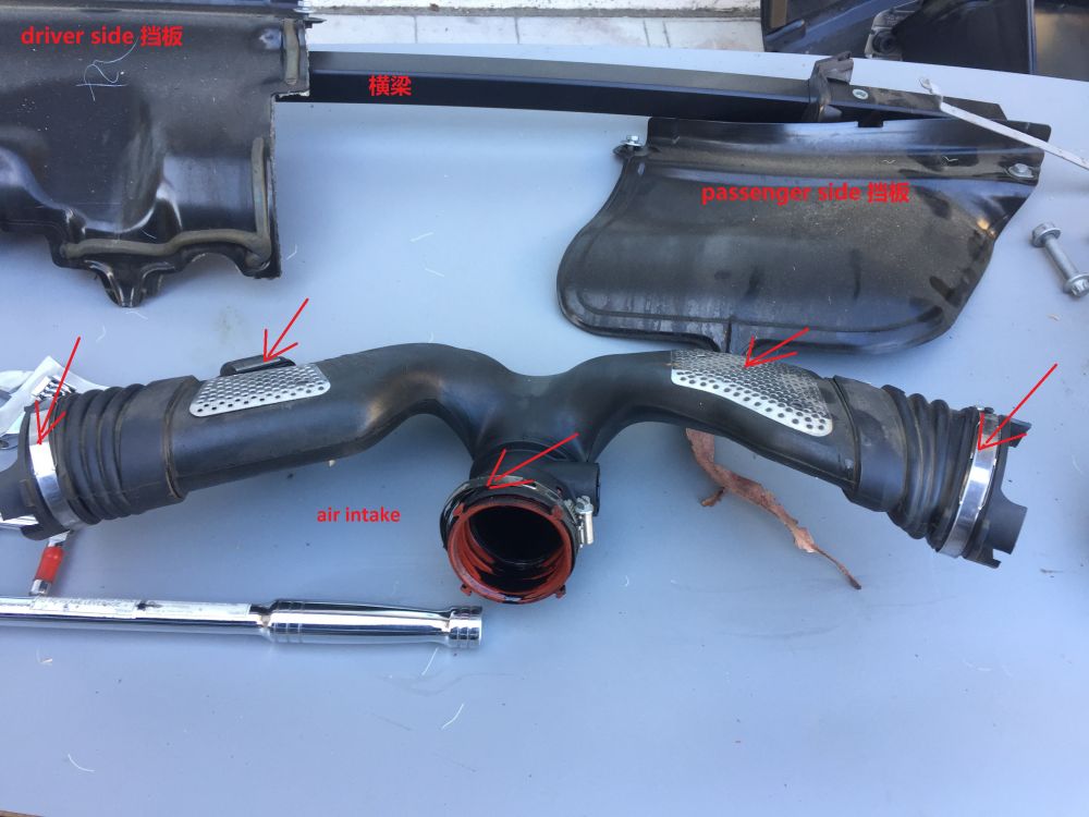 然后卸下air intake。图显示卸下的横梁,挡板,和air intake。