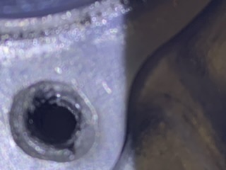 现在变速箱已经全部卸开,Left case 上留下的四颗螺丝断体成功钻出三颗。最后一颗失败了。似乎和箱体完全融合在一起了。只好钻洞,re-tap.