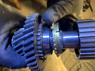 第一次换上新的三档的synchro ring, 发现三档的synchro ring完全锁死在三档的gear 上, 即使这样,用力敲都没有办法装上circlip。以为是新的三档的synchro ring有问题。用旧的三档的synchro ring测试,才发现是我的粗心错误!因为用锤子敲过,这是铜的质地,担心新的三档的synchro ring已经受损,所以改用旧的三档的synchro ring。