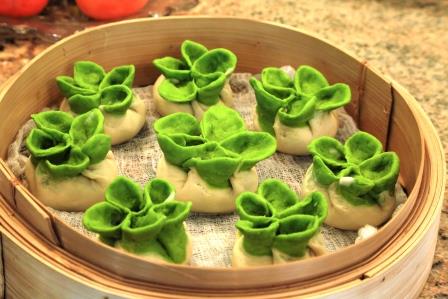 Ying的点心每次都带给我们惊艳!这次给我们带来的是双色素菜饺,它是以香菇, 豆制品, 蔬菜等为馅料,外用燙面包制而成。上面是菠菜汁染成的绿色,叠成一个个完美的花瓣, 完全是艺术品,让人不忍下口。下面色泽洁白,形态饱满。入口柔韧香鲜,胜过上海功德林。