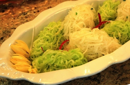 Ying还有一个菜是凉拌双丝: 佛手瓜丝和萝卜丝。清脆爽囗,吃完口留余香。Ying的凉拌双丝摆盘也与众不同,别出心裁。越是简单的菜却越能表现出厨师的功力。