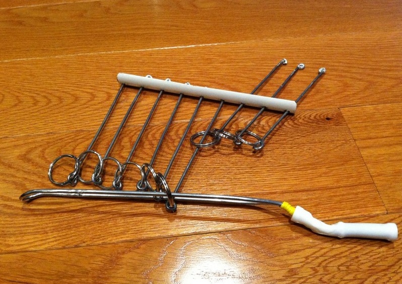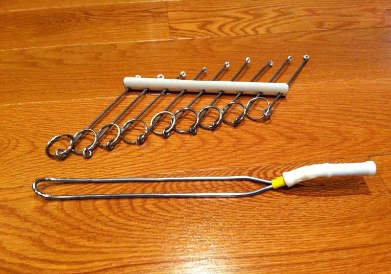 现代社会电子游戏铺天盖地,网上游戏牵心勾魂。手机人手一部。 人类娱乐形式简直像万花筒,令人眼花缭乱。很少人留意传统的游戏。或许与年龄有关,我特别怀恋小时候的土玩具,土游戏。 九连环是我最爱之一。 记得父亲曾为我做了一个。刚学时很激动。 觉得能把九个一环套一环的环子从环架上取下很神奇。 心血来潮做了一个。钥匙圈是出差开会搜集的免费小礼物。 环架,包括那个白色把手, 是的油漆小桶提系。找几根废铁丝。 一段红铜水管(喷了白漆)竖割三分之一, 钻九个小孔, 就成了。教会了孩子, 至少可让他们摆脱手机或计算机几分钟。 熟手连卸带装十分钟,新手十五到二十分钟。 玩起来既练大脑,又练小脑,还有助于十指舒筋活血。偶然拿到办公室挑战同事,蛮有情趣。