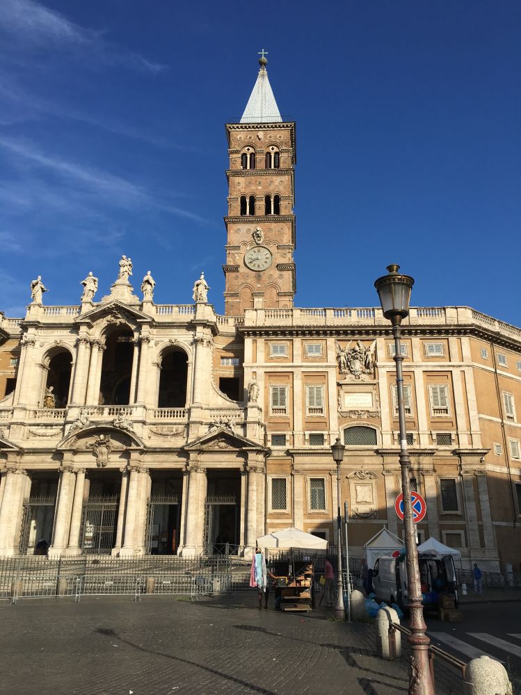 去角斗场途经圣母大殿(教堂)。大殿刚刚开门, 我们算是最早的客户。 大殿是四世纪建成的,是罗马最主要的天主教堂之一。 是四所特级宗座教堂之一, 也是欧洲最大的圣母教堂。 其外部装修具有相对现代(十八世纪)的风格,内部则是保存最完好的拜占庭建筑风格。每年8月5日, 游客可以参加“降雪神迹”(Miracle of the Snows)庆典。该教堂也叫圣母雪地(典故略)。