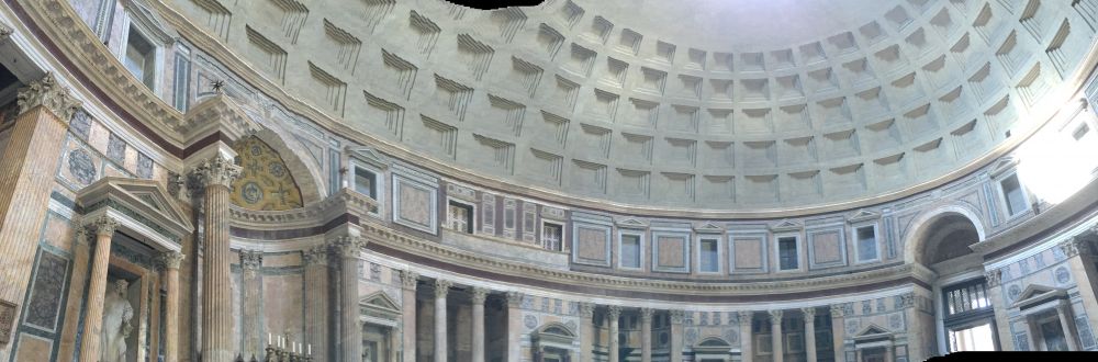 万神殿是公元126年建成的。最初是罗马万神之殿。七世纪起被用作天主教堂。这是罗马保存最完好的古建筑之一。万神殿建筑奇迹之一是它的巨型的圆拱顶仍是世界最大的无钢筋预制水泥结构。估计后人不会单为创世界纪录而建造如此巨大的无钢筋拱顶。