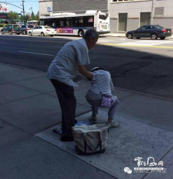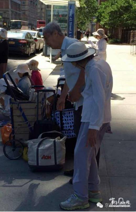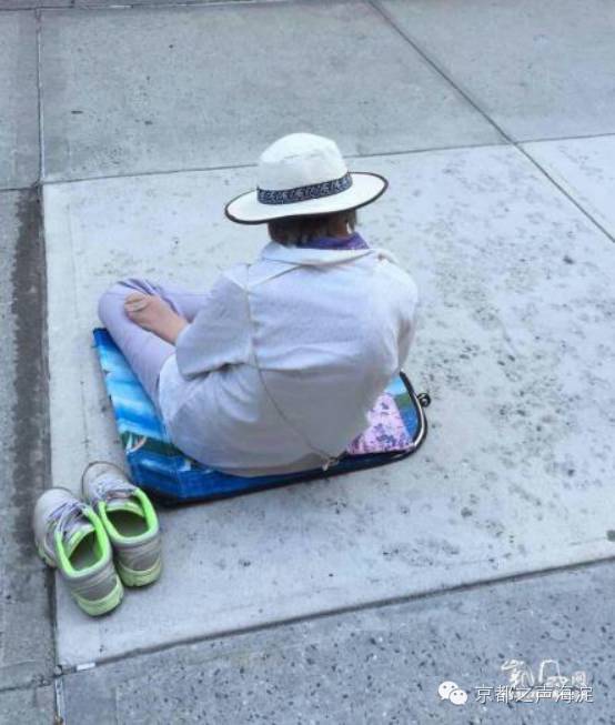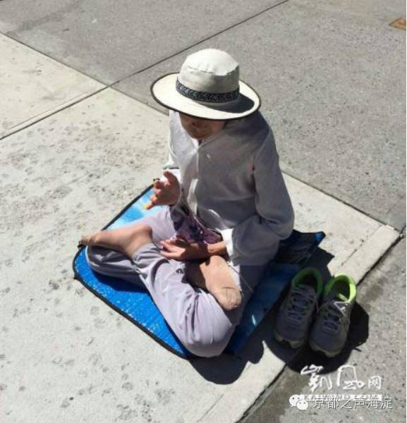 2015年7月20日上午,網友在美國紐約市曼哈頓12馬路邊拍到葉浩夫婦枯坐紐約街頭“練攤”的淒慘場景。