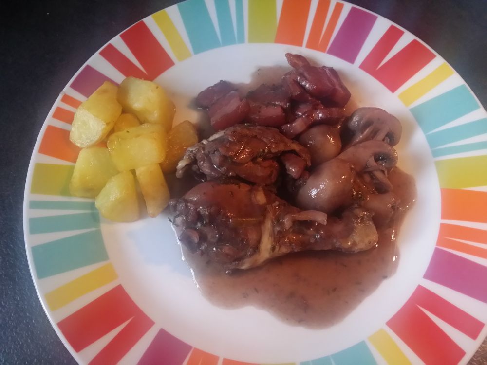 红酒炖鸡应该是经典的传统法国菜肴之一,正宗的红酒炖鸡选用的是公鸡,用红酒炖制而成,吃的时候鸡肉的香味,红酒的味道和香料很好的融合起来,对吃惯了烤鸡,炖鸡想换换口味的朋友会带来不一样的惊喜,大家不妨试一试看。