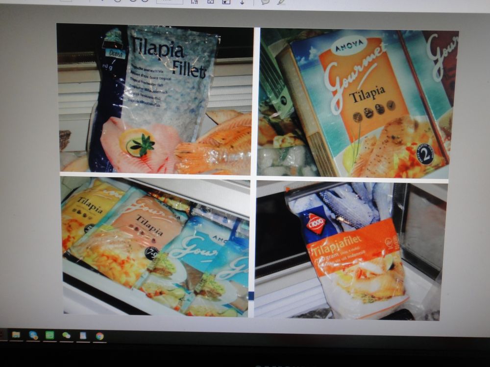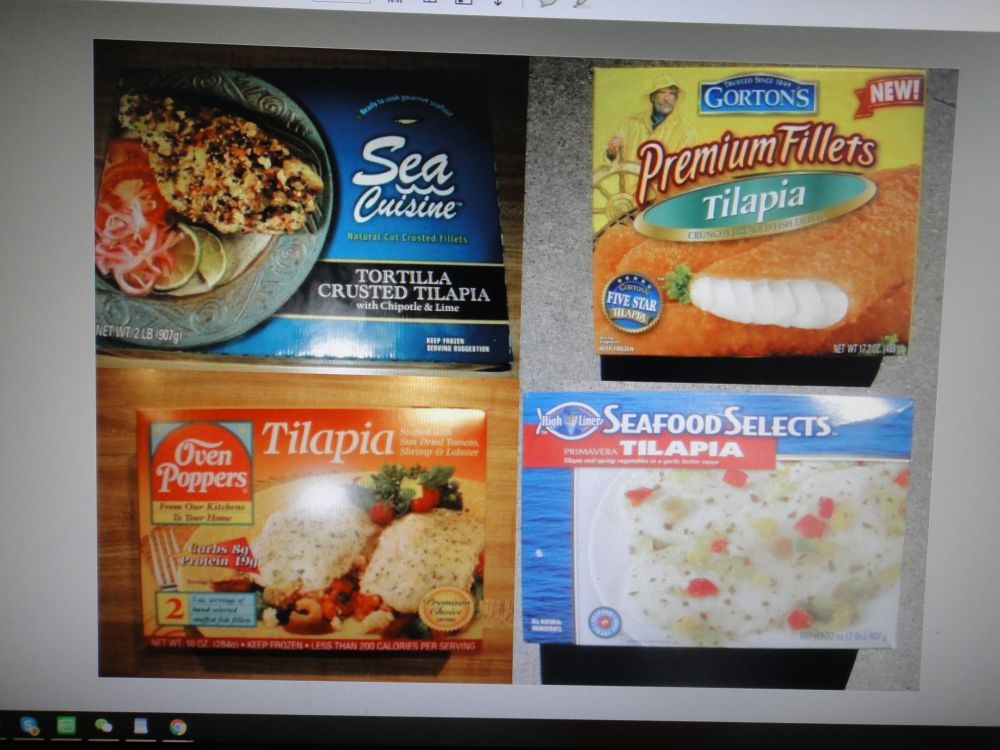 美国80%的罗非鱼肉(Tilapia)来自中国,到超市可看到多牌号,包装精美,国产的罗非鱼肉片 (见下多图)。最近几年以价格低廉,很快占领美洲市场,现已上升成为全美第二大畅销鱼类,仅次于三文鱼。去年一篇报道,说是吃罗非鱼肉不如吃腌猪肉(Eating Tilapia Is Worse Than Eating Bacon),罗非鱼肉销量应声大降。好多人吃鱼肉是奔着欧米伽-3脂肪酸去的。一听罗非鱼肉很少含欧米伽-3脂肪酸,而含比腌猪肉更多的欧米伽-6脂肪酸,就停买了。