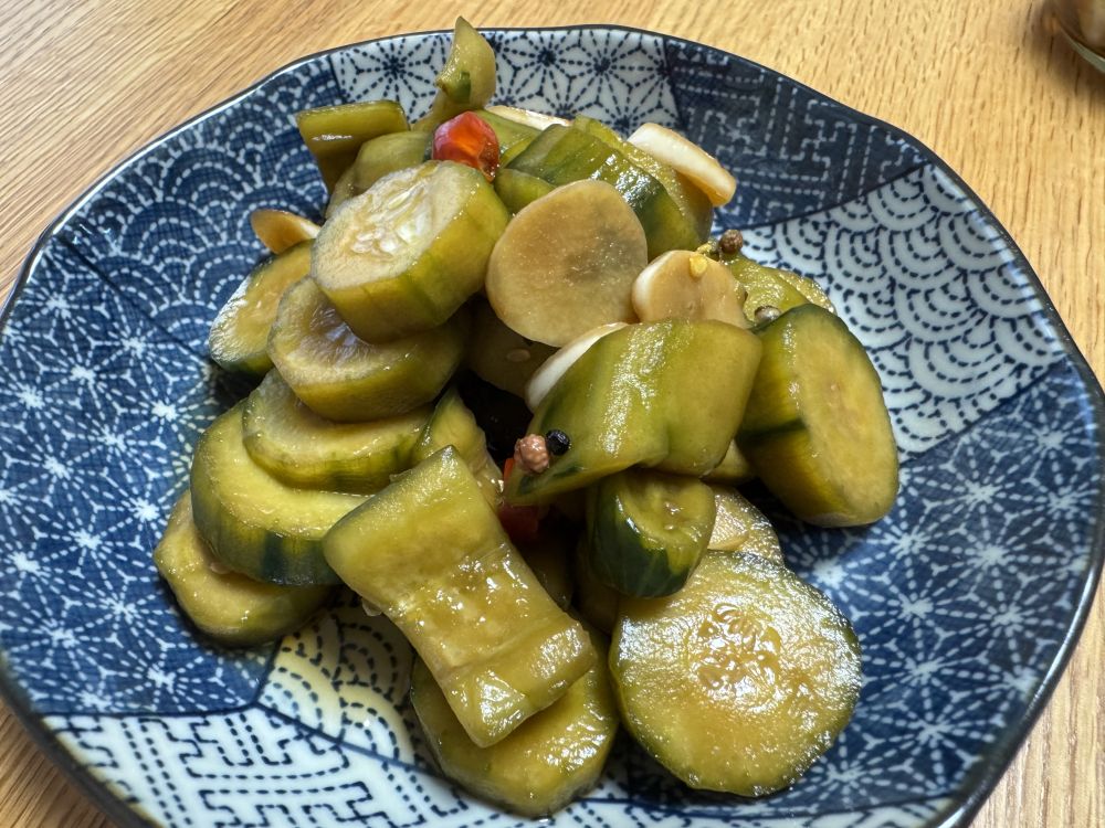 黄瓜也吃邻居家地里的,还有朋友同事给的,也是吃的昏天黑地的。换着法儿的吃,正好领导从别人家树上摘了一些梅子回来,去年做的咸梅子还有,这些就做糖梅吧,用红糖腌了一下黄瓜,洗净糖水,放酱油醋辣椒,进冰箱冷草一晚,很好吃。不喜欢吃糖的,就用盐做酱瓜也很好吃的。夏季的蔬菜,除了西红柿冷冻保存不会变味儿,其他的蔬菜冷冻后,多少都会变味儿的。所以,蔬菜就吃应季的吧,腌制的蔬菜也会吃够的。但是可以保留干菜,干菜的味道非常好。