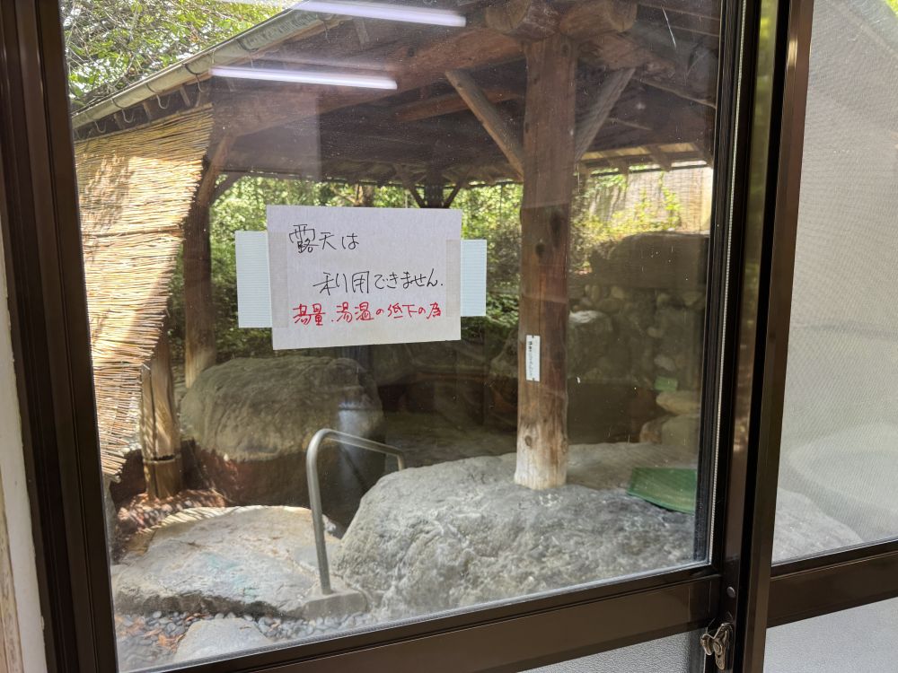 吃饱了主要是要去泡温泉的,这家温泉叫《山口温泉》。我们连续去了30年了的温泉,眼见着兴衰无言以对。以前这个温泉的老板娘在的时候,收拾非常的干净。现在就是一个老板的儿子(应该是56十岁的单身)在经营。贵贱不说了,就说温泉池吧,这个是室内的,老旧,池子也不是每天清洗的,或者说从来不清洗也是有可能的。还关闭了室外的池子。水温从原来的41.6℃,降到了现在的33℃。温度对于我们来说不是问题,夏季这个温度的温泉是最享受的,但是不开放室外的温泉就说不过去了。