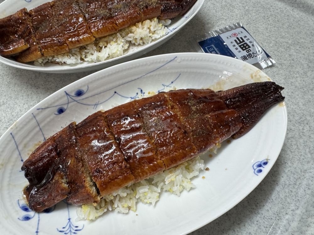 昨天是7月的最后一个周末了,本来准备好了去海边试用新装备的,早上起来查看高速道状况,条条大路赌的严实。算了,还是去家附近的温泉吧。周六买了两天鹿儿岛产的养殖鳗鱼,养殖的鳗鱼与深海鳗鱼的不同点,是养殖的个头小,肉质偏薄。买了两个特大的。周日早上做了杂粮米饭(大米,糙米和小米)。买来的成品烤鳗鱼,里面附带两份调料酱汁,酱汁附带胡椒粉。