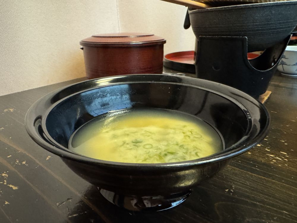 铁锅里热的酱汤,等下面的火熄灭了,就马上盛出来。