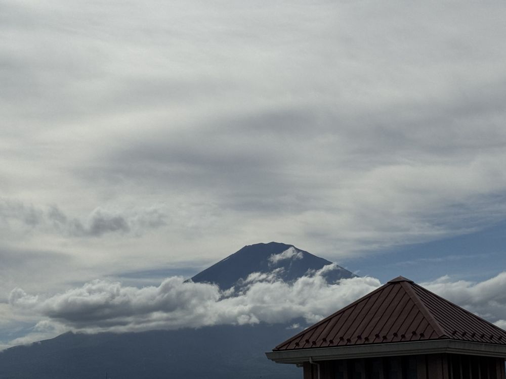 从富士山的坡度和山顶的缺口,就能看到富士山的接近3个面。