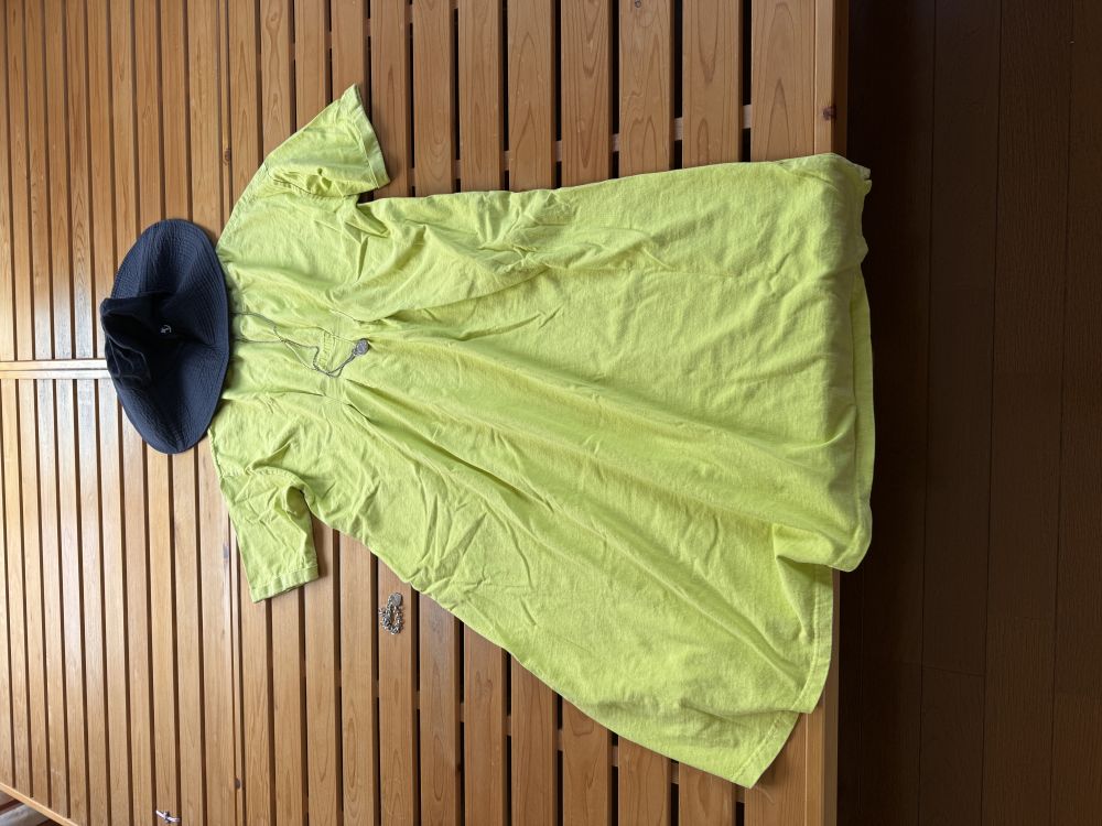 1. 纯棉的长袍子,这个棉线的针织法,厚软,下坠感比较强。意外刮风时不会被掀起。两侧有兜儿,穿起来很方便,洗后可入衣物干燥器,(使用干燥器时,不要往里面放入过多的衣物,把衣物折叠平整后干燥,衣物不会有褶皱。)9、 10月份出行比较多,这样的棉线衣物穿起来舒服。打折时半价买的。搭配的那个大帽子,也是很多年买的,夏天用着很遮挡阳光,就是遇到有风的时候,需要用手把着点。