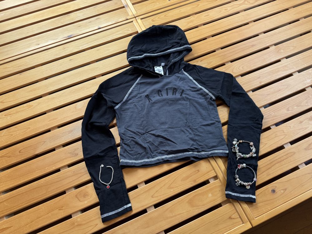 这件衣服也是打折时买的,一直看好这件衣服,终于等到打折30百分了,X-gril 的衣服价格都不便宜,还给老8买了一件白色的T恤。主要喜欢这个是短款的,还有一个帽子,可以套在羽绒服和冲锋衣里面穿,也可以穿在开衫里面,保暖又显得年轻和有活力。