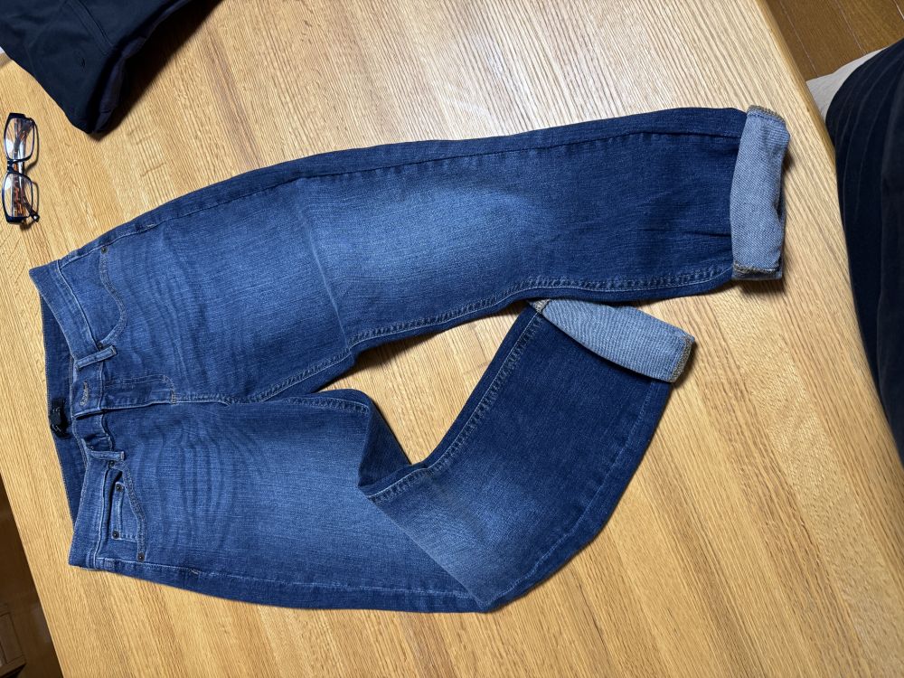 搭配下面的牛仔裤也不错,今天穿了这条牛仔裤,非常的合身。