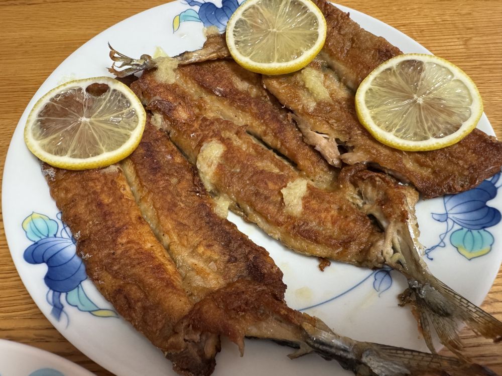 秋刀鱼现在大量上市了,而且收拾的很干净,就买了两种,一种弄成片的,正好用来做这个香煎。去皮太麻烦了,这次带着皮做的,鱼就会煎的很完整。不能吃辣椒,所以在面糊里面放了孜然和花椒粉,一点胡椒粉,一点酱油,面粉和淀粉的比例1:1是最好的酥脆口感。面糊不要太稀,能挂上鱼片就好。煎的时候,多放一点油,用 铁锅和不锈钢锅最好,这个不能用不粘锅,温度不够高,会把鱼片煎碎。(鱼类最好放点盐,蛋白质会很好的硬化,口感更好,酱油只是为了增香和上色)