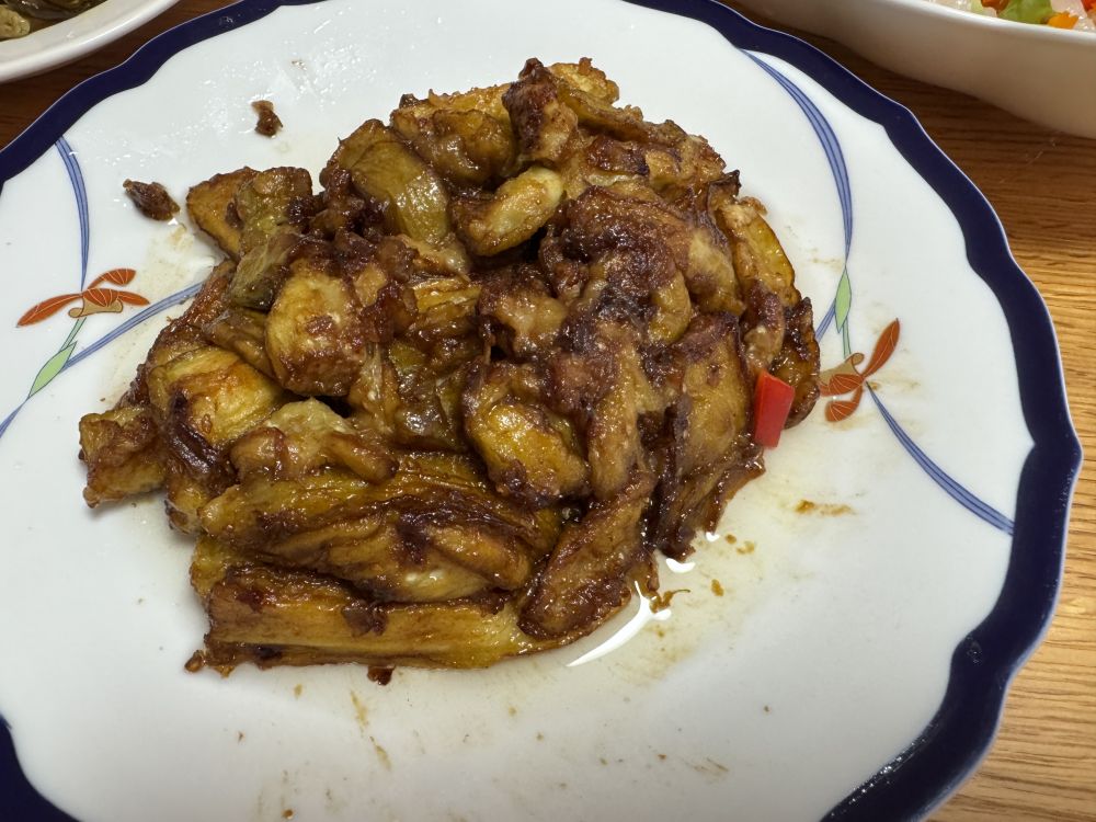 焦烧茄条。这个简单,做法就不说了。