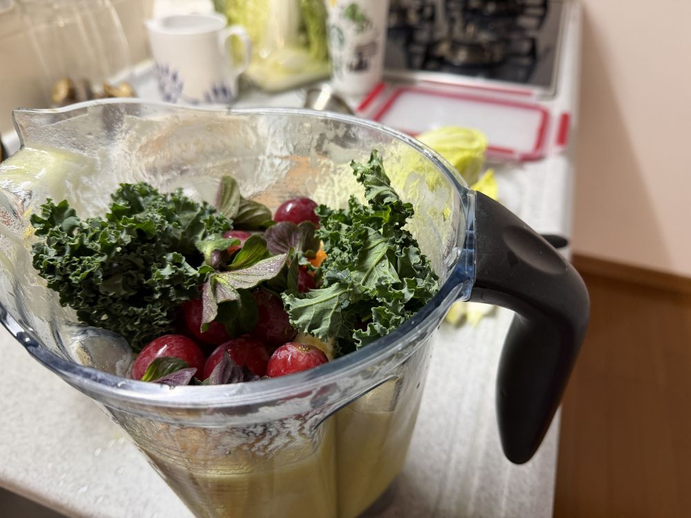 每天红绿黄黑的蔬果汁的折腾,继续着。蔬菜基本是自家种的,水果百分百买的。