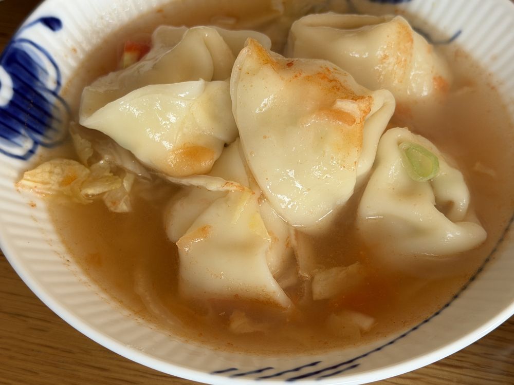昨天在家躺平一天,吃完第一顿饭已经12点多。早上6点多起来,准备蔬果汁,然后开始收拾外面的工具柜,给工具柜刷防腐剂,全部都收拾好了,领导从地里回来,就开始包馄饨。用大号的饺子皮包馄饨非常好。自己打的虾泥,加了鲜贝和自家种的大葱。用了葱油和花椒油调味,非常的鲜美。好吃但不自律,最近碳水太高了。