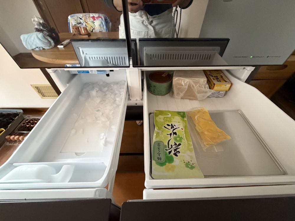 第二段,左边是制冰室,用的不多。右边是放奶油和茶的冷冻室。