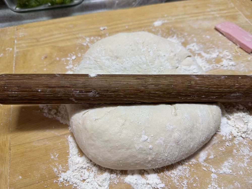 面团揉一下排气,擀成面饼。