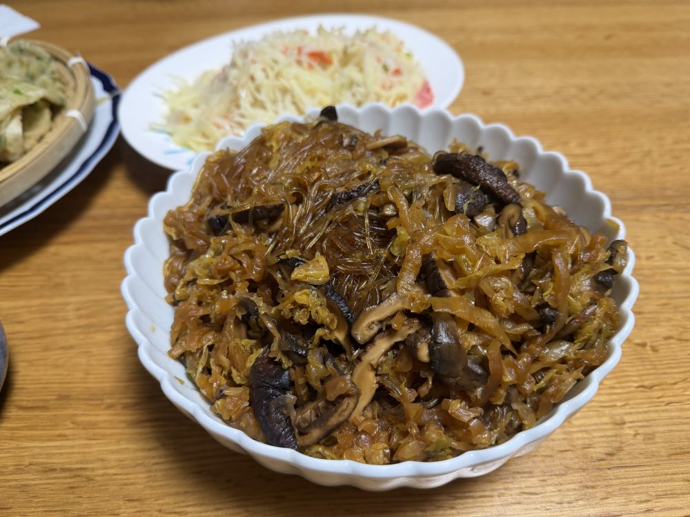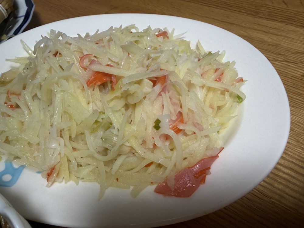 配上两道:酸菜粉儿,土豆丝