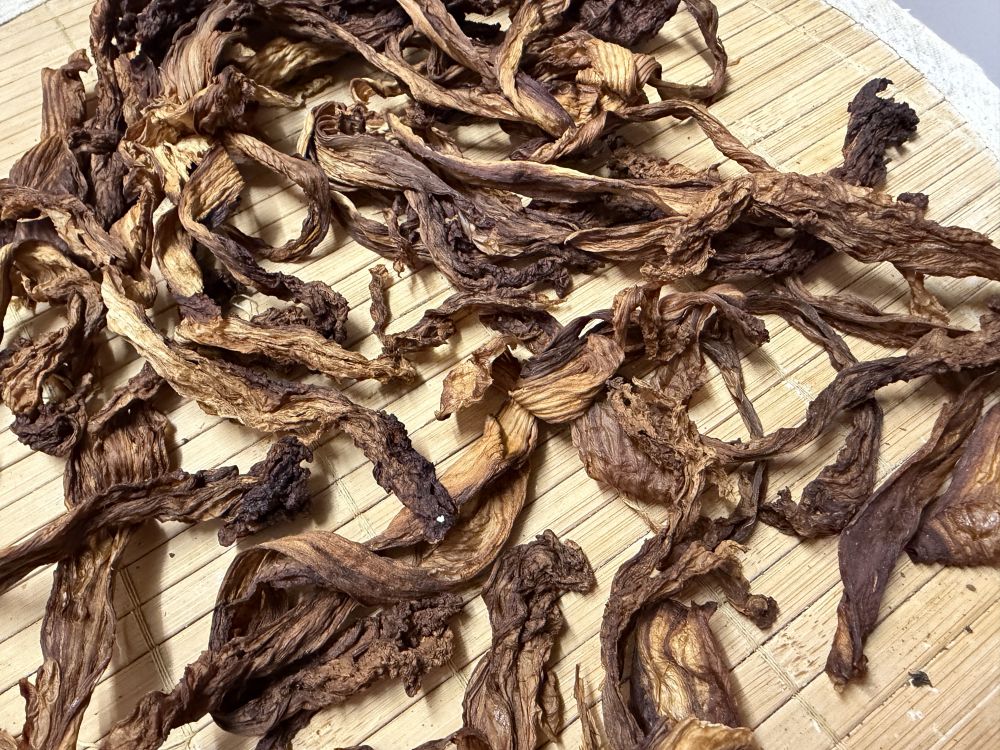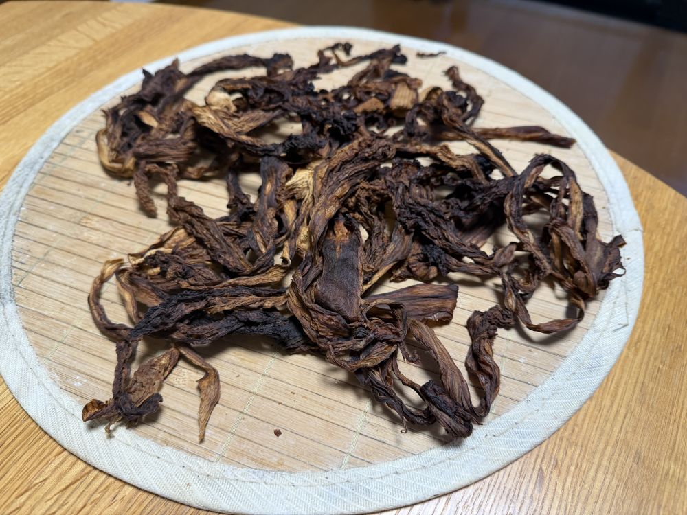 还做了梅干菜,其实我也没做过梅干菜,第一次做,沿用了三蒸三晒。下面的图是晾晒后的样子,已经明显的出了香味。