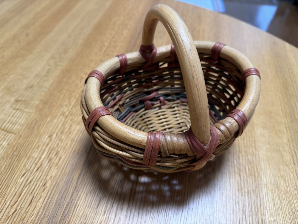 换掉上面那个大篮子,用上了这个小小的,装两把钥匙两个零钱包,正好。这个小篮子是新的,留个照片,等着旧了按原来的颜色喷涂一遍,就焕然一新了。