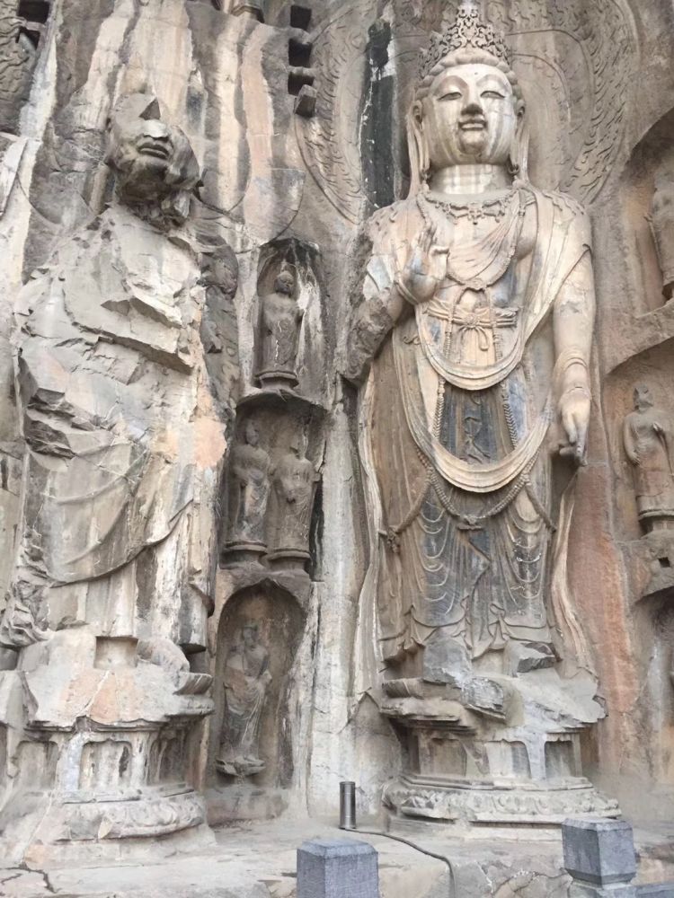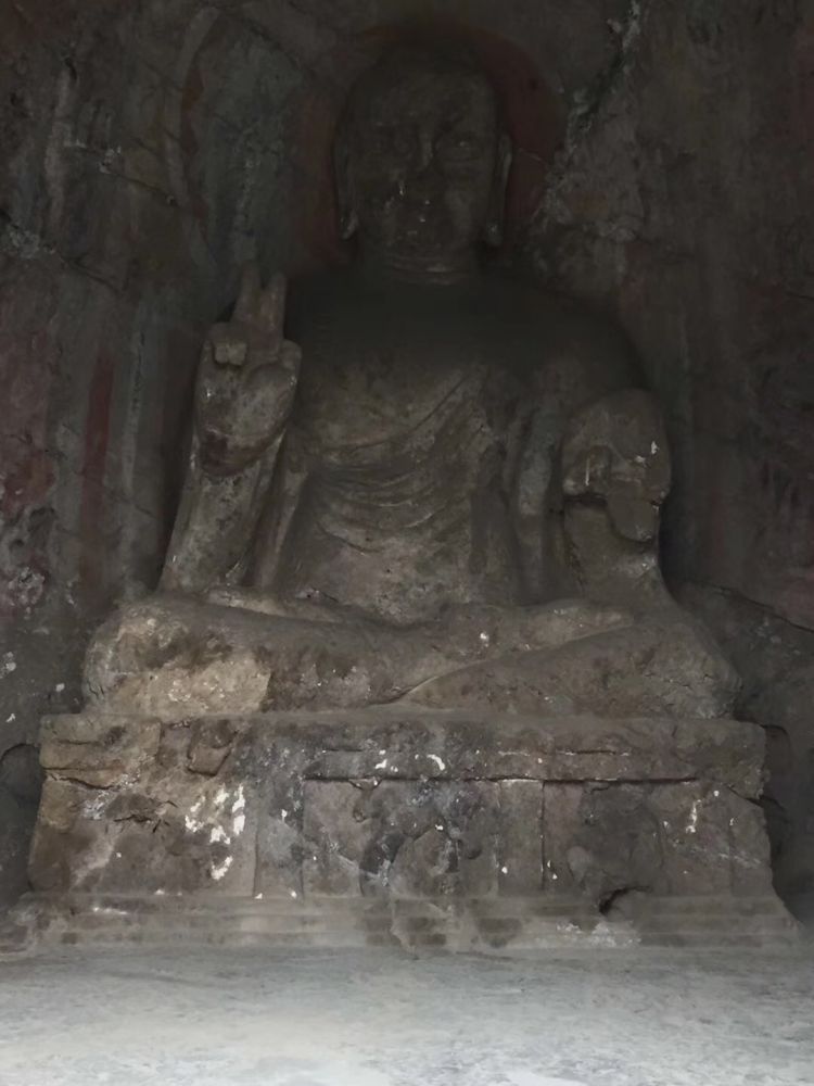 再游龙门有感一 近观龙门是石窟,远眺龙门遍窟窿。若是雾霾飘渺来,哪能辨别佛与僧? 再游龙门有感二 黄鲤梦想跳龙门,鱼化龙后方为神。若是宁在伊河游,洛阳水席桌上寻。 再游龙门有感三 洛阳自古帝王都,孝文武曌凿石窟。唐武周祖虽灭佛,浩劫最在民国初。 再游龙门有感四 匠心独运魏唐宋,龙门顽石佛幻成。文革幸有农机院,留下剪刀卖古萌。