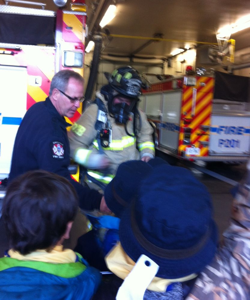 这是我们童子军小组第二次去消防站参观。第一次赶上雪暴,人还没到齐就赶上人家出警,只好取消了。于是我们在重新预约改在今天。车位不够,家长不能等,孩子放下约好了一小时后来取。我到早了五分钟,拢着孩子们在门口集合。里面的消防员看见我穿着制服开了门让我们进去。进去是进去了,我一个人可是管不住这一堆孩子。于是开了车库的门,把孩子们都撵了过去。这下更疯了,十几个孩子到处跑来跑去。