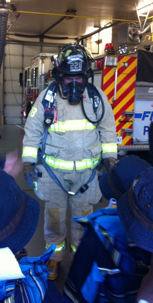 第一部分是严肃纪律和撤离训练。孩子们平日里已经接受了无数次训练,都知道要保持安静听指挥,当然,现场控制还是非常必要的,因为知道和做到这中间的差距还是比较大的。安静下来以后负责的大爷宣布了第一注意事项,就是警报响起的时候要绝对服从命令,并从后门撤出车库到停车场,避免影响出警和造成现场事故。正说着,警报真的响了。我正琢磨这次参观估计也要泡汤,喇叭里说是个系统测试,所有人都虚惊一场。于是孩子们听话地撤出,又听话地回来继续听讲。