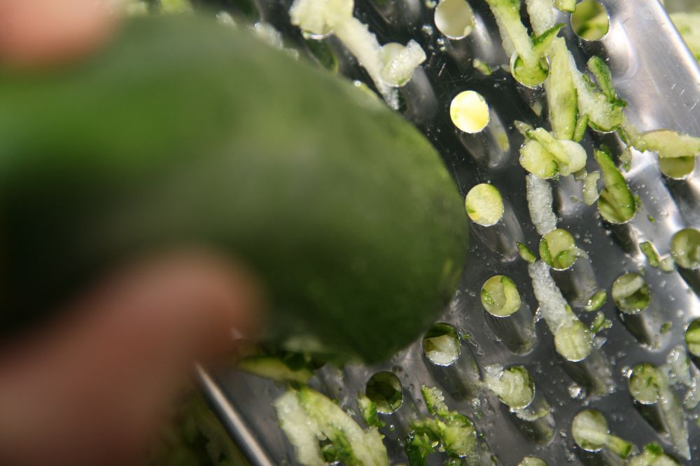 准备面粉、泡打粉(一勺儿就够)、鸡蛋,西葫芦(zucchini,北美的亚洲超市叫意大利青瓜)、盐、黑胡椒碎。上面这个菜谱用了Thyme(百里香),我换了芹菜叶,不放或者愿意放自己喜欢的其他香草也行,葱花也行。