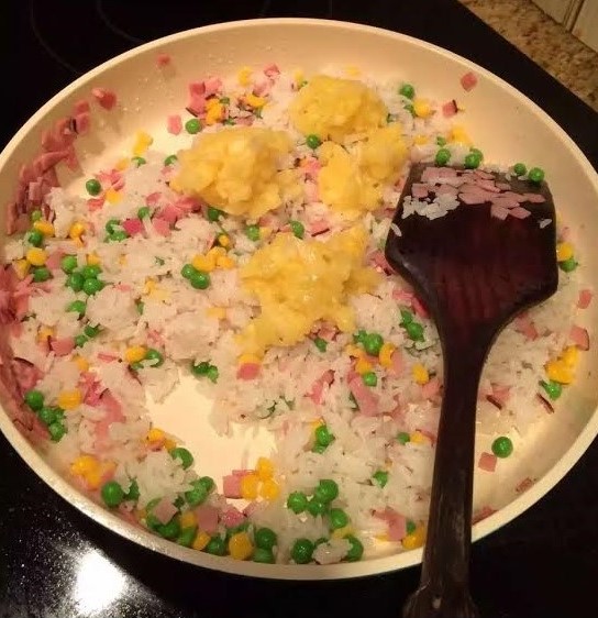 丁丁爱吃的的菠萝饭,妈妈们可以无限创新加入自己喜欢的食材。