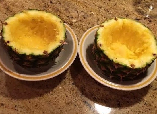 菠萝切成碎丁放少许盐煞一下