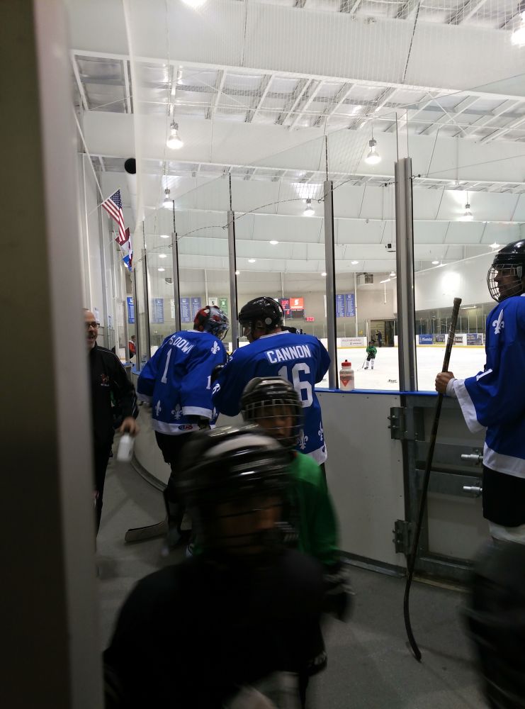 “三对三”俩礼拜下来,我算是看出一点儿门道儿。顾名思义,场上除了守门员每个队每班儿(shift哈,不知道中文叫啥)只有三个队员在冰上,也没什么站位,都是全攻全守,节奏比常规比赛快一倍不止,冰场面积并没有缩小,因而每个孩子空间更大,带球机会更多,整场下来射门儿机会特别频繁,双方比分都攀升很快。队员在场上时间也就一分多钟吧,频繁换人,全上全下,上去的都像上满弦的疯狂小老鼠一样满场跑,比常规的成人比赛节奏还快。和平时的赛季不同,这个一周一次,只比赛,没训练。裁判在场上也没那么严肃,经常和小队员聊天儿,给他们支招儿。再有,最大的不同就是,队里的孩子水平都相对很高,估计这种项目都是给希望提高的孩子准备的。和花样滑冰不一样,这个项目包括交过手的两个对手团队,除了丁丁,一水儿的金发碧眼白小孩儿。我个人的感觉这个项目其实不太适合熊孩子,他应该去上个滑冰课,配合学习一些带球和射门的分解动作训练。又或者被分错了队,因为他和队友的差距实在太明显,滑冰、带球技巧以外,还缺乏争抢意识。虽然如此,我还是发现熊孩子在第一场比赛后面和开始的表现都有明显的不同,尤其是参与感和滑冰的速度都有明显提升,应该是被比赛的节奏感染的结果。