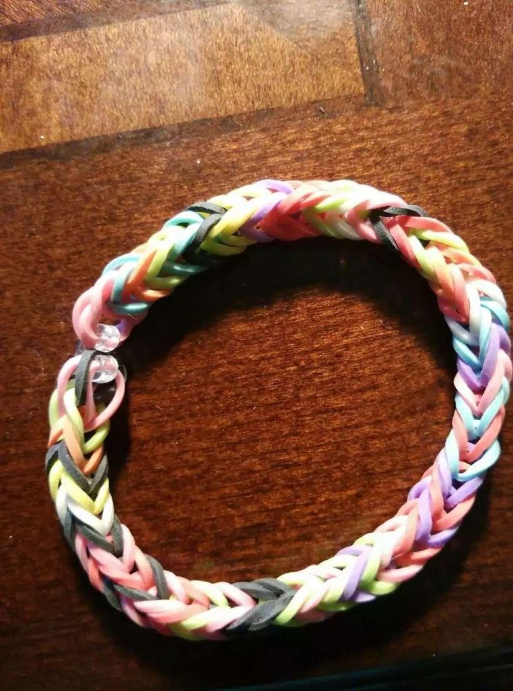 他爸给买了"彩虹织机",熊孩子做了很多手链送给小朋友,