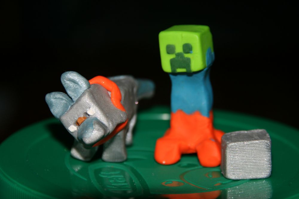 两个月以前有朋自远方来。阿姐是个软陶艺术家,决心豁出去陪孩子几个晚上,于是出去买了死贵食品级的原材料,带着丁丁做了minecraft里面的角色。