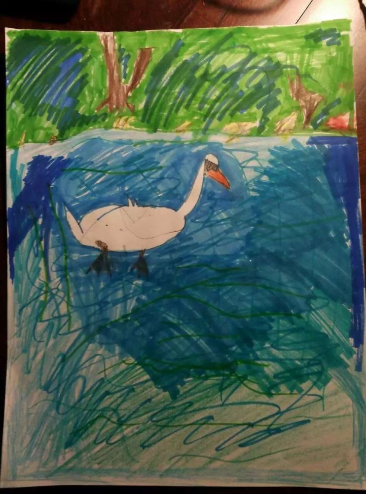 五岁以前,咱家熊孩子只有一个题材,汽车,而且非常高产,一天几十幅,几十幅一样的。为了支持他“创作”,咱家的画纸是成箱买的,笔也是。他爸还经常点评,说你看,有细节了,这张有雨刷。我真是要强忍着恶心才能拍手称好。六岁那年在邻居家过年,一位初识的客人听说丁丁他爸画画,又看见丁丁的现场作品,要求把闺女送咱家来学画。他爸说学啥,一起画着玩儿呗,我们也不教,就是买够了笔和纸,不限制他,爱画啥画啥。人家闺女妈是个实在人,扭头走开之前说了句“我家也有笔和纸。”