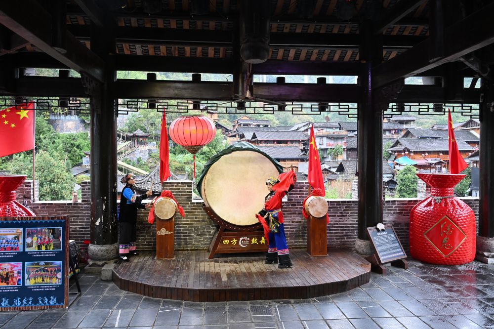 墨戎苗寨,是苗族文化保存的最完整的古村落之一。苗寨入口处的迎宾大鼓,苗族姑娘敲鼓欢迎我们。